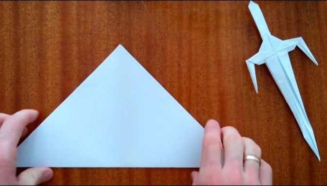 - Разогните меч оригами, как на фото. Соберите ручку меча.