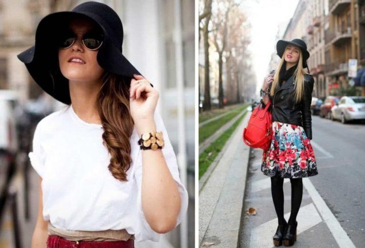 Хорошо смотрятся шляпы с классическими брюками и рубашками. Для этого лучше выбирать головной убор строгой формы. А вот платье и шляпа — отличный образ в Чтобы согреться в дождливый осенний день, можно надеть шляпу с объемным свитером крупной вязки — стильный и уютный лук готов. Перечислять все, что можно надеть с этим предметом гардероба, можно бесконечно. Поэтому стоит запомнить то, что шляпа сочетается со всеми классическими и повседневными вещами, иногда ее можно примерить к образу в трендовом нынче стиле спорт-шик, но тут нужно смотреть уже на сочетание вещей.