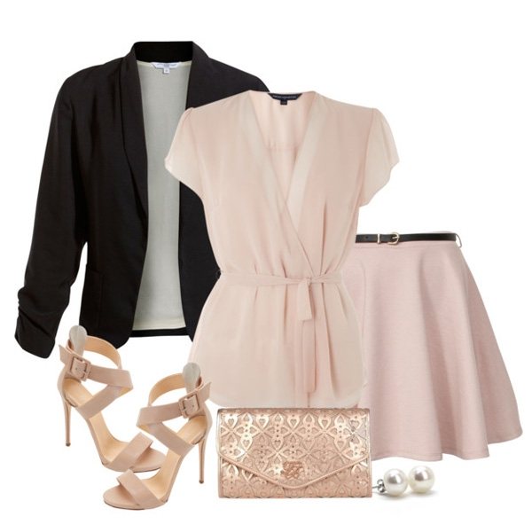 Очень пикантно смотрится нежного пыльно-розового цвета блуза и туфли с ней в тон. Как видим стиль хоть и можно смело назвать «деловым», но нежность выбранной гаммы и высокого качество ткани придадут этому луку вполне респектабельный вид, пригодный даже для делового свидания.