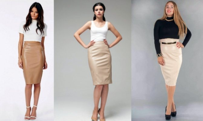 Прямые модели юбок подчеркивают фигуру и хорошо подходят к разным силуэтам. Для нестандартных фигур, при полноте бедер, ног и талии, прекрасно подходят длинные юбки из кожи мягкой выделки. Также прекрасно подчеркивают фигуру юбки с запахом, юбка-колокол и различные другие модели, созданные с учетом коррекции фигуры. Оригинальные модели с аксессуарами в виде бахромы, кружева, бижутерии и заклепок выглядят дерзко и вместе с тем элегантно на разных типах фигур. Среди аксессуаров, украшающих кожаные юбки, также можно увидеть молнии, пуговицы, шнуры, вставки из других материалов.