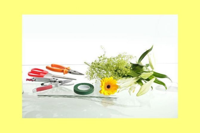 - термопистолет, флористический клей;