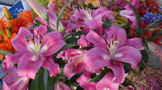 - Сортовое разнообразие. Существует более 500 оттенков лилий, что даёт бесконечный простор для фантазии дизайнеров и флористов.