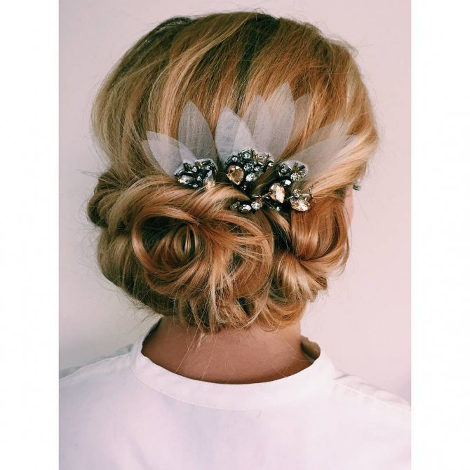 Представительницы коротких волос могут не расстраиваться, ведь профессионал своего дела с легкостью создаст даже на такой длине настоящий шедевр, а в нашем случае – красивый пучок на голове невесты.