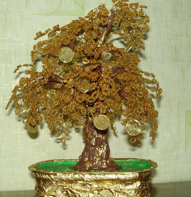 Денежное дерево из бисера. Фото