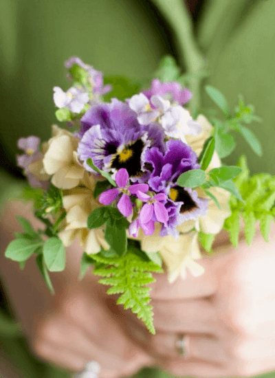 Маленький букетик невеста может не только держать, но и прикрепить к муфте, если торжество происходит в холодное время года. Некоторые наряды специально оснащены петельками для букетиков. Лепестками фиалок можно усыпать скатерть на праздничном столе, чтобы интерьер выглядел гармонично с образом влюбленной пары.