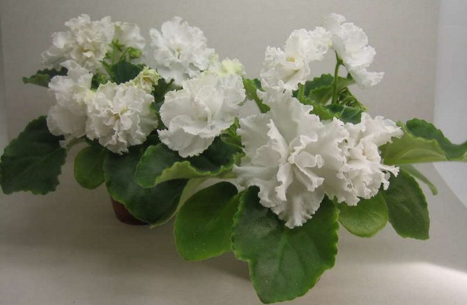 Фиалка сорта Свадебный букет принадлежит к семейству Геснериевых, роду Сенполия Гибридная.