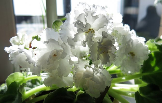 Среди фиалок с белыми цветками популярностью пользуется сорт Свадебный букет.
