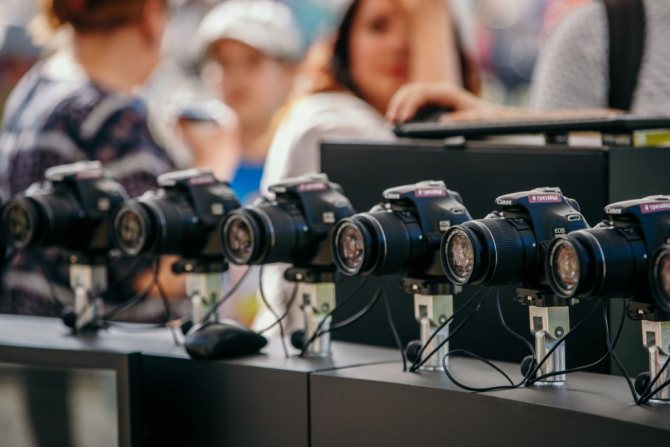 Это уже более сложное техническое решение: фотозона для бренда «Сочный» на недавнем VivaRovar 2021. Фишка — в генерировании и постинге видеоконтента в соц.сети с помощью фотоустановки из 15 камер — фотоматрицы.