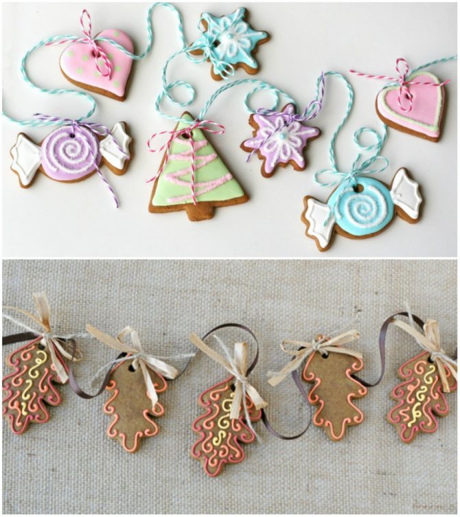 - По краям гирлянды оставляем свободную леску, делаем петли, чтобы подвесить готовое украшение.
