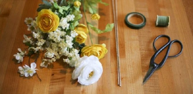 Естественно, из живых цветов украшения получатся намного эффективнее и красивее. Для создания цветочного украшения нужно подготовить несколько необходимых предметов.