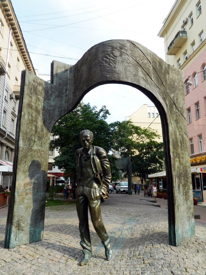 Первый памятник Булату Окуджаве был открыт в 2002 году в столице. Он стоит на пересечении Арбата и Плотникова переулка. Его автор — Георгий Франгулян. Создание монумента было приурочено к двум памятным датам – Дню Победы и дню рождения поэта. Творцы воссоздали кусочек старого арбатского двора: подворотню, две скамейки, живое дерево… В центре композиции – фигура барда. Этот скульптурный комплекс напоминает о творчестве барда и его ностальгических воспоминаниях.