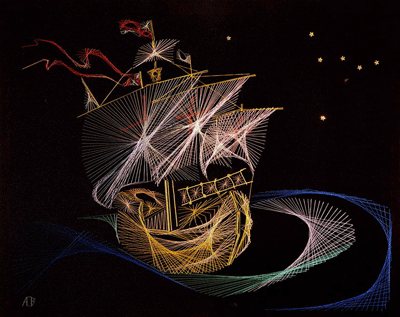 Суть такого вида рукоделия заключается в том, что на нарисованном на картоне эскизе делают проколы иглой или шилом. Через них продевают нити, используя специальные алгоритмы. В результате получается цветной рисунок.