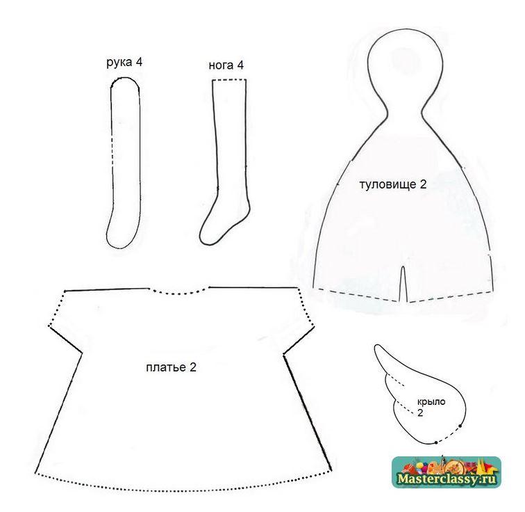 Предлагаемая выкройка рассчитана на тильду высотой 35 см.