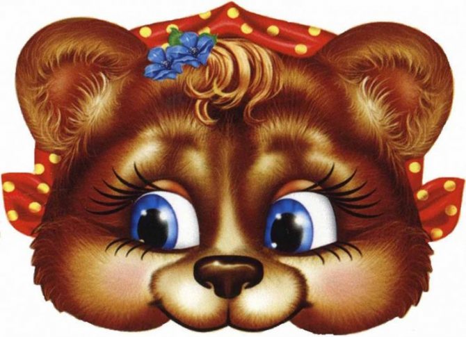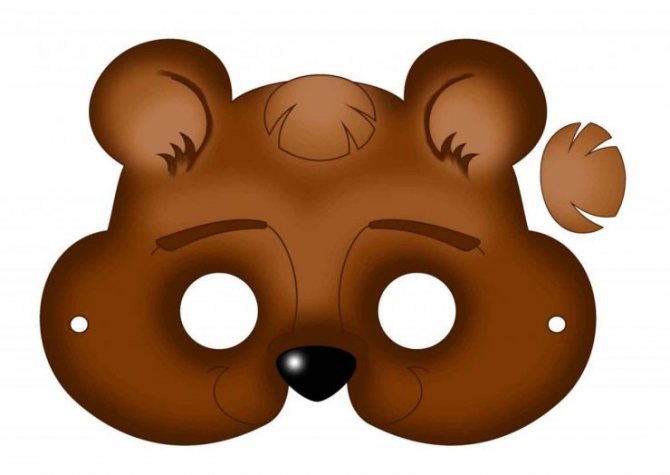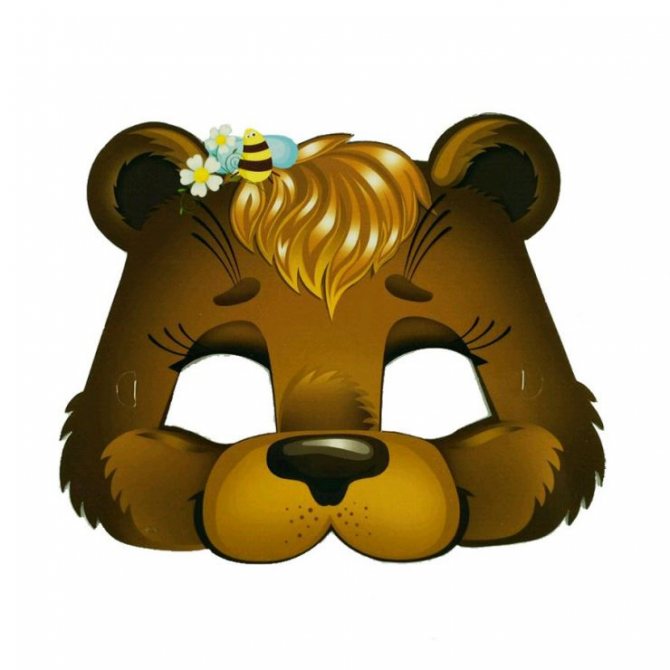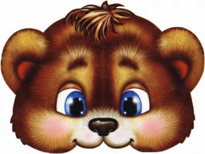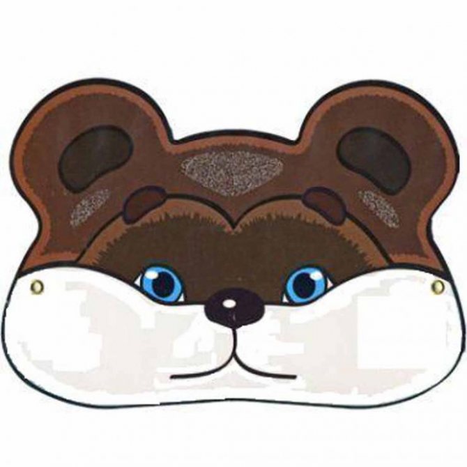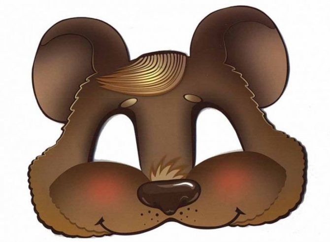 Если нет возможности пошить шапку мишки, то вполне можно обойтись маской. В интернете можно найти маску на любой вкус, распечатать на цветном принтере, или, в крайнем случае, разукрасить карандашами. К картонной маске не забудьте прикрепить резиночку, чтобы ее можно было надевать.