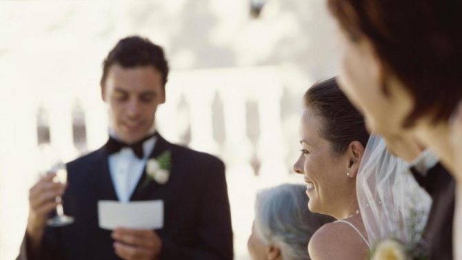 Особое место на свадебном торжестве занимает благодарственная речь жениха. Так, мужчина своей смелостью выразить личные мысли и сказать «спасибо» родителям невесты показывает, что их дочь находится в надежных крепких руках. Как полагается, мужчина должен владеть четким словом, сжатым смыслом, красивыми точными фразами и в то же время не быть слишком скучным и болтливым.