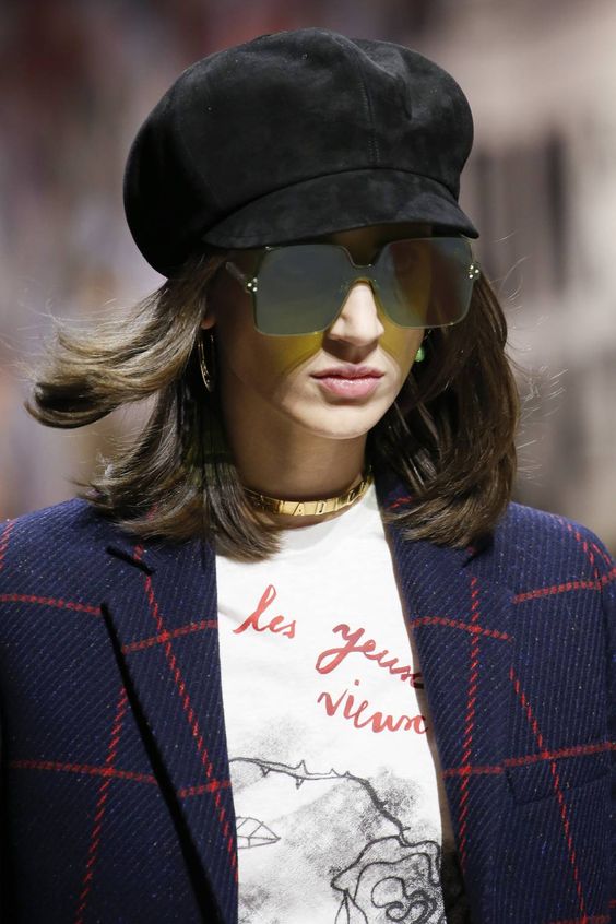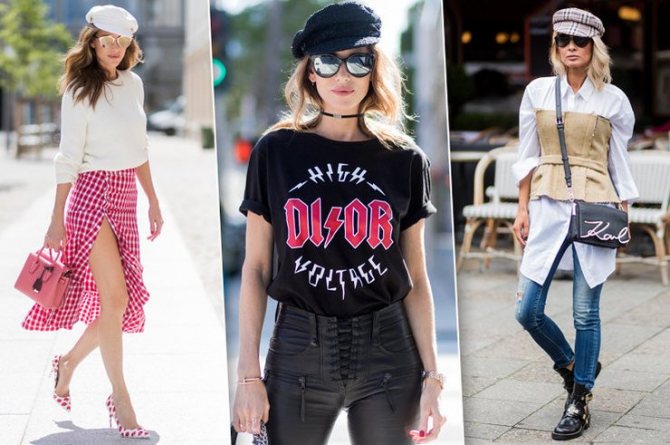 Дизайнеры позаботились о большом разнообразии кепок-фуражек в 2019 году: есть модели из денима, бархата, вельвета, с декоративными элементами и без них. Так что стоит примерить несколько вариантов, чтобы понять, какая кепка смотрится наиболее эффектно. Фуражку можно сделать интересным акцентом романтического образа (понадобится водолазка, юбка плиссе, ботильоны, прямое пальто), а можно использовать при создании повседневного расслабленного лука: носить ее с джинсами-бойфрендами, футболкой, кедами.