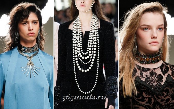 Среди главных фаворитов стоит отметить шейные чокеры из металла. Что касается классического ожерелья, внимания заслужили те, что были представлены в коллекции модного дома Chanel. Все прочие кутюрье и дизайнеры решили взять оригинальностью, а потому мы рекомендуем вам ознакомиться с яркими и необычными моделями таких дизайнеров как Lanvin, Roberto Cavalli и Louis Vuitton. Именно эти аксессуары, как нельзя лучше, смогут дополнить ваш осенний или/и зимний образ.