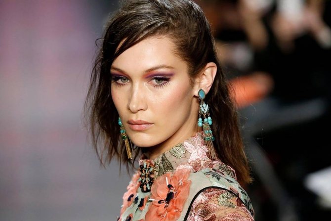 Крупные серьги могут быть не только круглыми, но приобретать и другие оригинальные, порой очень замысловатые формы. Серьги-люстры, инкрустированные жемчугом, крупными бусинами, «гранатовыми зернышками», а также всевозможные серьги-подвески с массивными камнями, веточками растений и даже рыбный скелет из искусственных камней — все эти украшения приветствуются в моде 2019-2020 года.