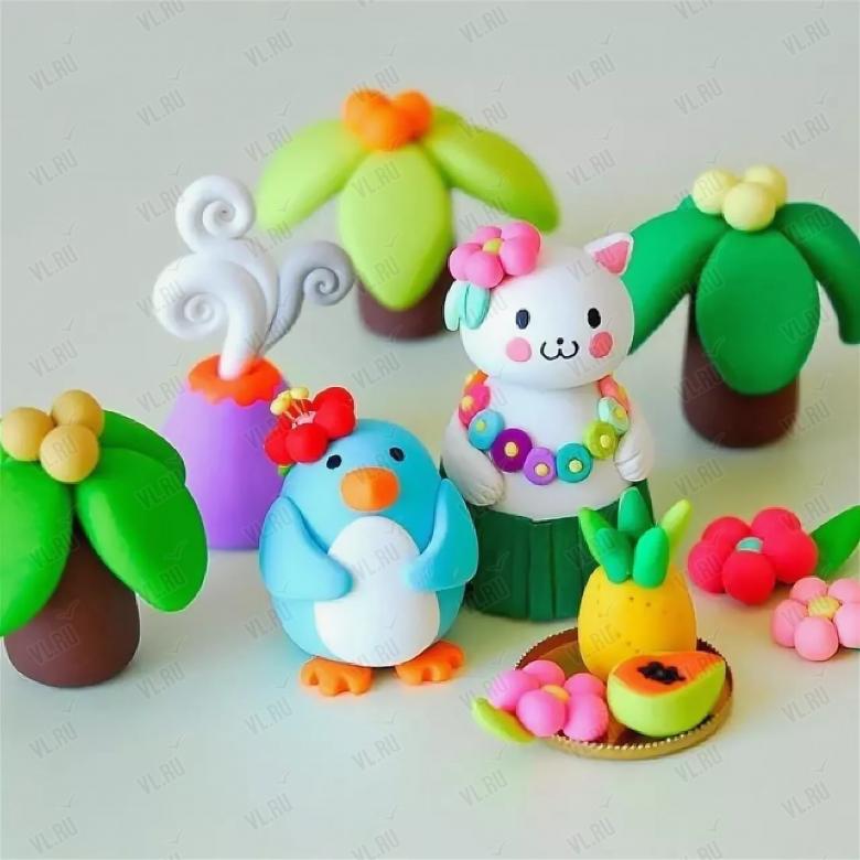 Художественная ценность работ из цветной пластики достигается путем ступенчатого плавного перехода от простого к сложному. Долговечность поделок достигается применением самозастывающих масс.