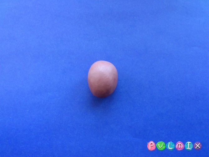 Начните с лепки головы спортсмена. Для данной цели можно использовать абсолютно любой пластилин, все равно лицо будет скрыто под шлемом. Скатайте шарик и аккуратно деформируйте его в овал.