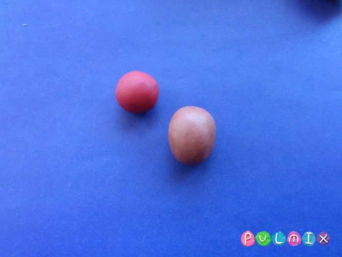 Подготовьте большой красный шар и две трубочки для лепки верхней части амуниции хоккеиста.