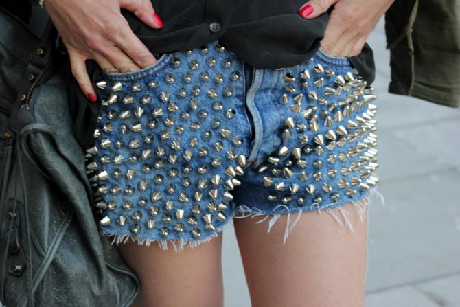Шипы и заклёпки – ещё один вариант украшений в виде поделки, до сих пор популярный. Рисунки можно наносить, используя так называемые трафареты.