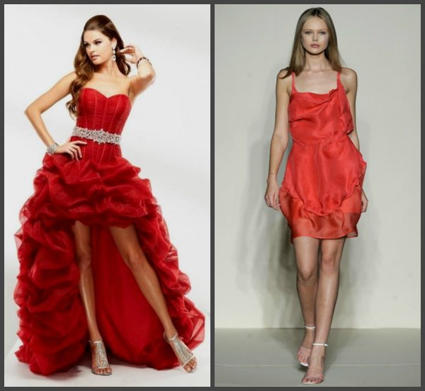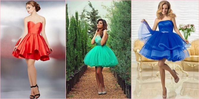 Короткие и в то же время пышные модели подходят любительницам стиля ретро. Первые образцы создавались из корсетного лифа, подчеркивающего талию, и объемной юбки с кринолином. Этот контраст визуально стройнил девушек, придавал образу элегантность. Сегодня при выборе короткого пышного платья в ретростиле уместно дополнять образ короткими перчатками или воротничком в виде банта или рюши.