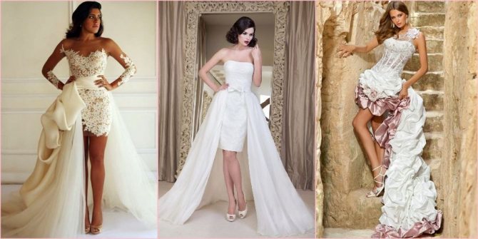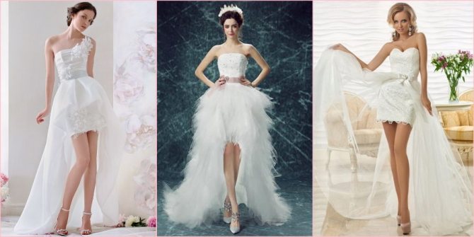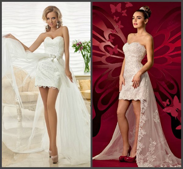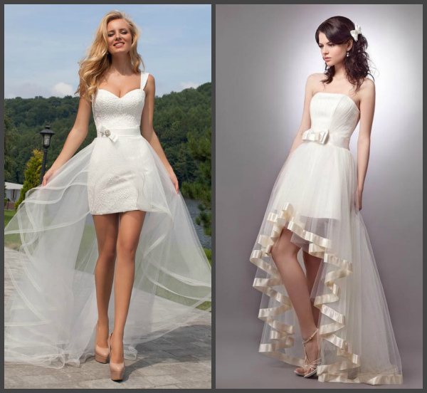 Еще один свадебный вариант для барышень, которые хотят совместить длинное платье с коротким.