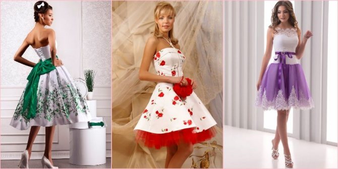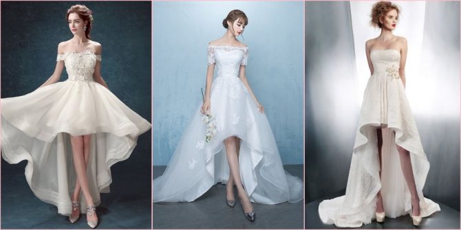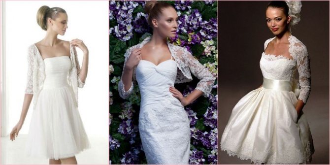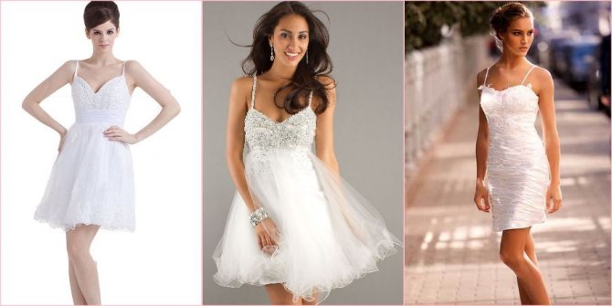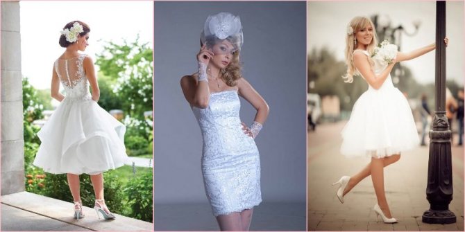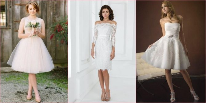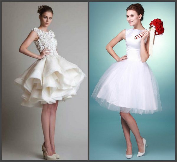 Рассматриваемые модели отличное решение для девушек, мечтающих выглядеть в свой свадебный день настоящей принцессой, но которые по каким-то причинам, не хотят надевать длинный наряд.