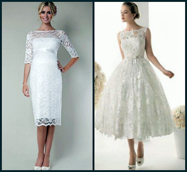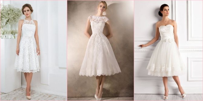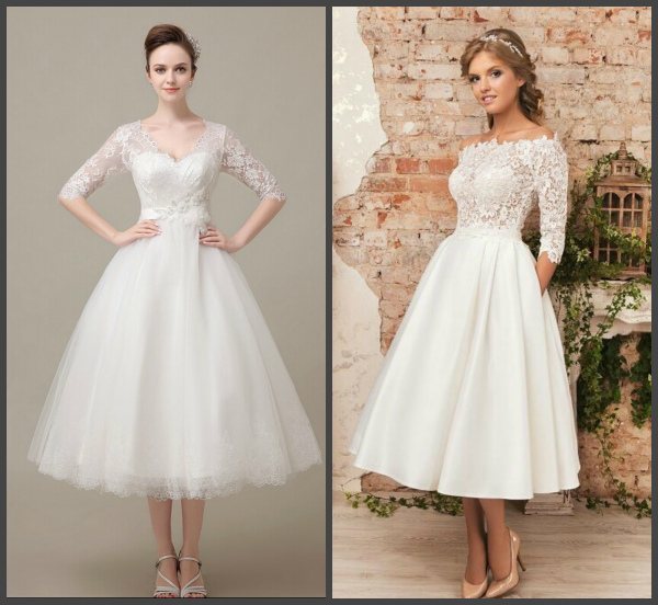 Есть несколько фасонов свадебных платьев со средней длиной: