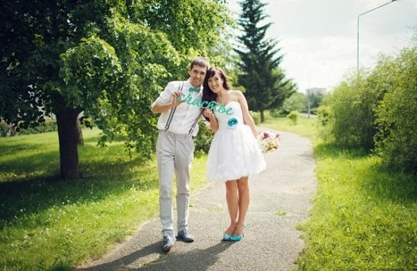 - Короткое платье – практичный вариант еще и потому, что после свадьбы его спокойно можно надеть на вечеринку или праздник, а не повесить мертвым грузом в шкафу. Особенно актуально это для цветных моделей. Многие девушки откровенно говорят: «Зачем мне покупать вечернее платье для свиданий в ресторане? У меня же остался свадебный наряд!» К слову, его можно надеть и на годовщину.