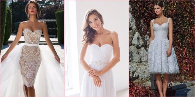 - такие варианты одни из самых сексуальных, ведь в них новобрачная может показать свои стройные ножки, да и фигуру в целом;