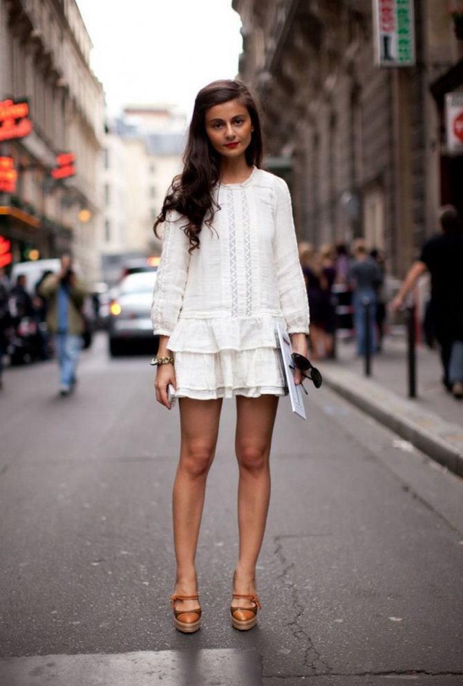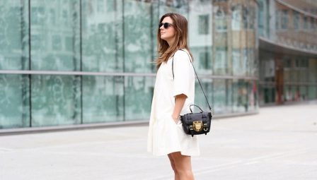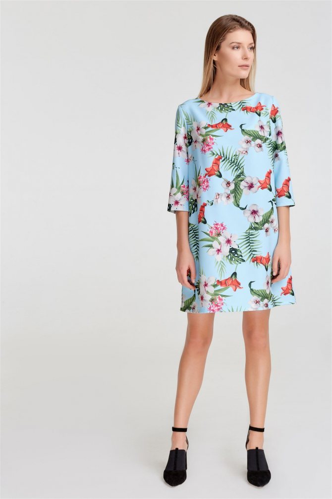 Платье А-силуэта в коротком варианте находится на пике популярности этого сезона. Чтобы сделать силуэт женственным, выделить все достоинства, девушки выбирают именно эту длину. Худенькие и невысокие женщины, благодаря особенностям силуэта в форме буквы «А», могут добавить нотки изящности в свой образ. Такая модель шикарно вписывается в сет для летних прогулок. Более длинные изделия, которые заканчиваются в районе колена, можно смело надевать на работу, сохраняя строгость и сбалансированность силуэта.