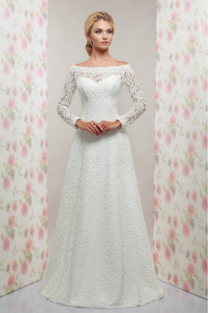 Кружевные модели помогут при создании женственного, романтического сета. Платье со шлейфом выглядит оригинально, его можно надевать не только на свадьбу, но и другие торжественные мероприятия. V-образный вырез акцентирует внимание на пышной груди, которая может стать большим преимуществом.