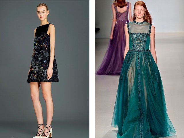 - В качестве отделки дизайнеры выбирают жемчуг, также в моде чёрные детали и аксессуары – это может быть кружево или пояс.