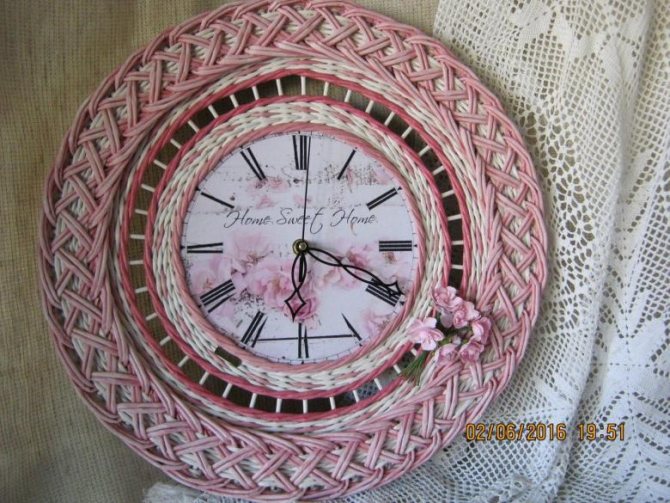 Из обычных газетных листов не сложно сделать яркую декоративную поделку, напоминающую солнце, — часы и украсить ими свой дом. Часовой механизм не используется, часы служат для декорирования стен. Для работы понадобиться около 30 газетных или журнальных листов, карандаш или ручка, игла, ножницы, нитки, 2 пластиковых диска. Далее выполнять работу следующим образом.