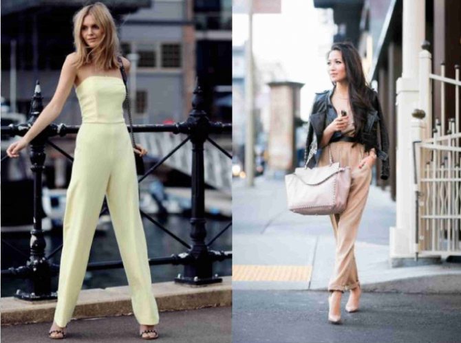 Из комбинезонов подойдут модели с классическими прямыми или расклешенными штанинами. В отношении цветовой гаммы здесь действует то же правило: выбирайте светлые оттенки и яркие рисунки. Варианты, выполненные в одном цвете, также приветствуются.