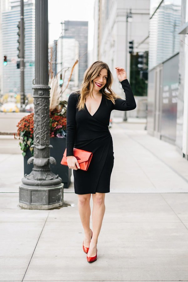 Платье, клатч и красные лодочки помогут создать вечерний наряд