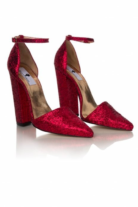 Необычные блестящие красные туфли будут незаменимы под минималистичное вечернее платье