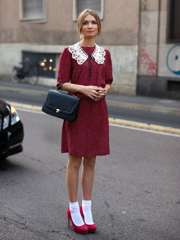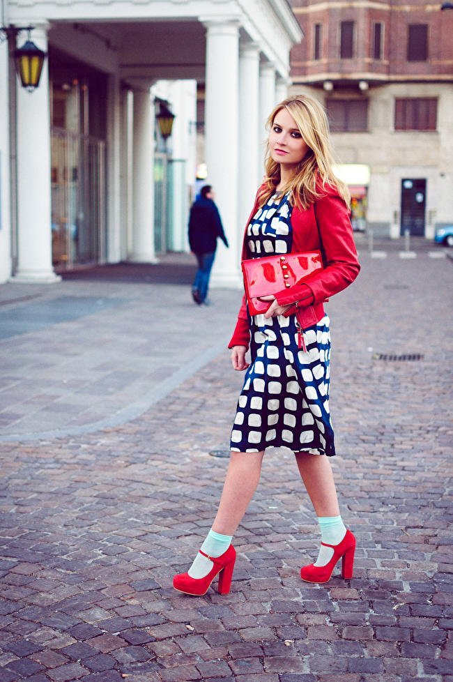 Луки в стиле ретро сейчас в моде — если хотите создать экстравагантный образ, примерьте красные туфли с носками