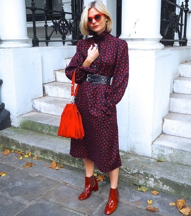 Прежде чем составить модный лук, нужно особое внимание обратить на цвет туфель. Наиболее модным в этом году является оттенок помидора черри — это красно-оранжевый оттенок, который позволит вам создать смелый жизнеутверждающий образ. При этом другие цвета красного также не запрещаются, потому как ничто не мешает быть стильной и в нетрендовых цветах.
