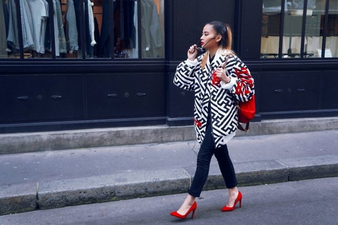 Яркие туфли могут отлично дополнить даже повседневное пальто