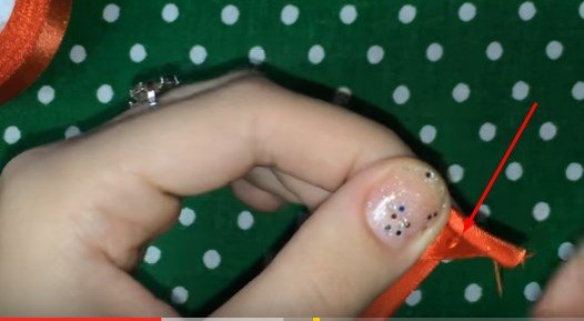 Для изготовления роз берем ленту, краешек загибаем углом.