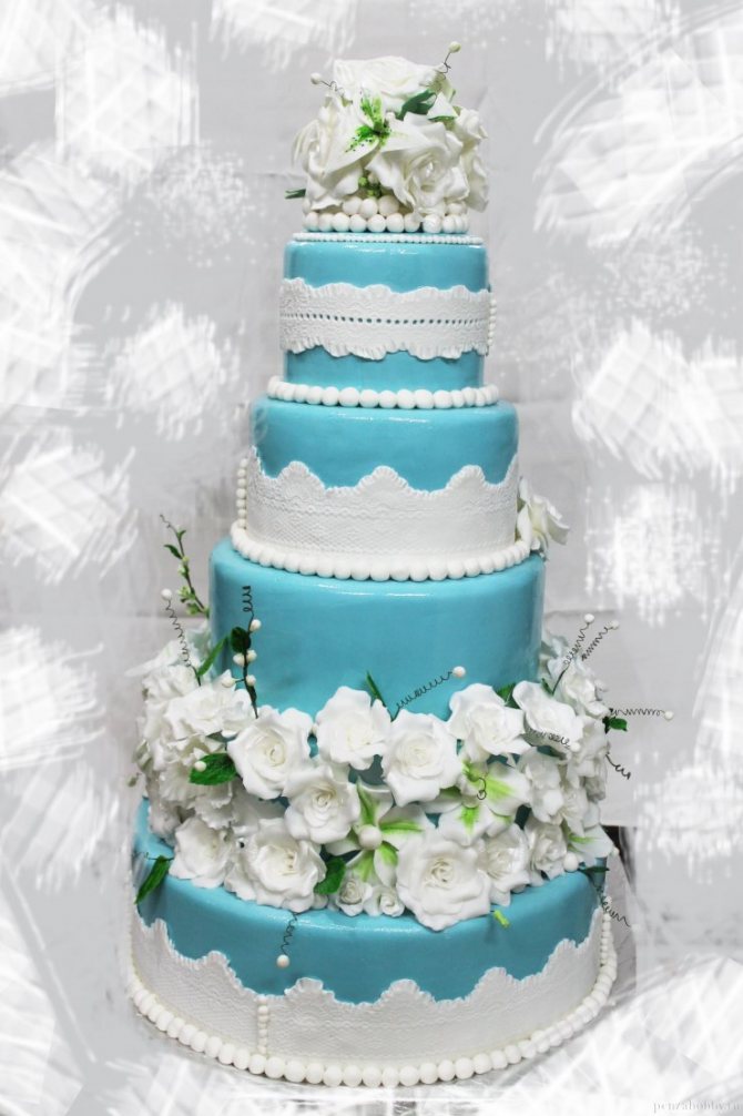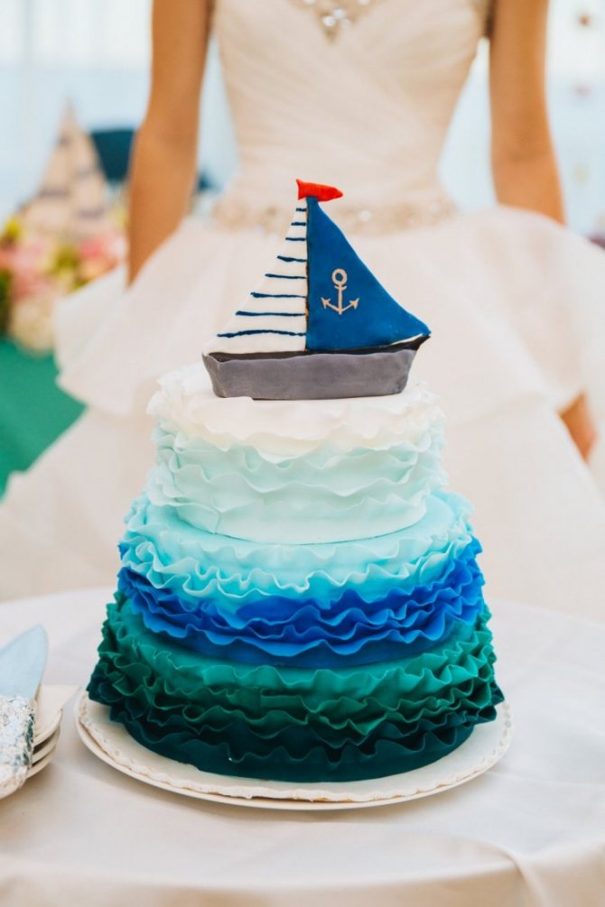Свадебный торт дает волю фантазии и украсить его можно как в соответствии с морской или небесной тематикой вечера (ракушками или птичками), так и классически – цветами.
