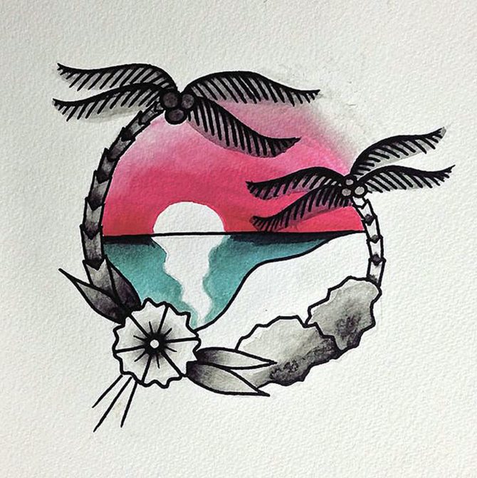Цветной эскиз на ладонь, закат