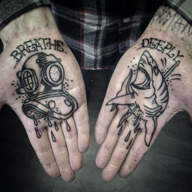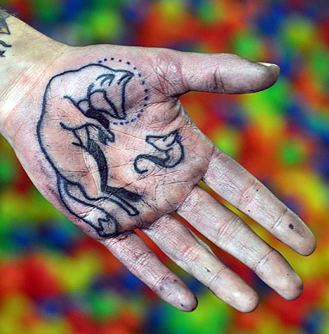 Следует упомянуть то, что, набивая такую картинку на ладошке вы должны быть готовы к тому, что ее придется часто демонстрировать. Осознанно или неумышленно – не важно, но факт остается фактом, ведь руки – это то, что всегда на виду.
