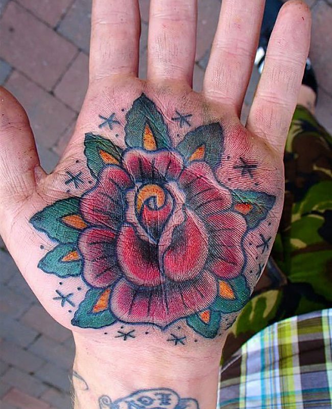 Ладошки человека подвержены активному механическому и термическому воздействию извне. С внешней стороны ладони татуировка подвержена сильнейшему трению, поэтому тату предстоит периодически обновлять и подкрашивать.