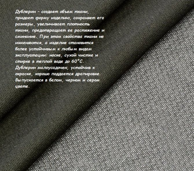 Дублерин не относится к основным тканям и используется как дополнительное средство уплотнения и придания жесткости деталям изделия.