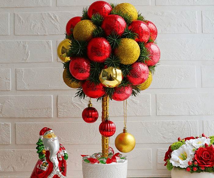 Топиарий из елочных шаров