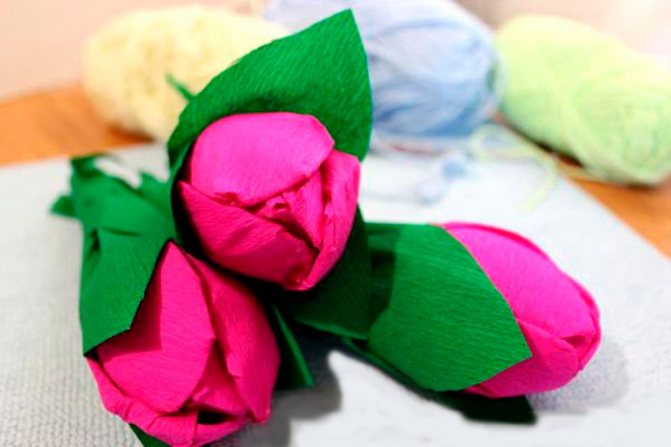 - Сделайте нужное количество тюльпанов таким же образом и сформируйте букет.